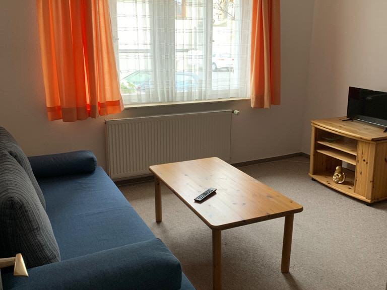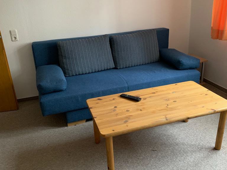 Unsere geräumige Ferienwohnung ist mit Schlafzimmer, Wohnzimmer mit Schlafsofa und zusätzlichem Einzelbett, Kabel-TV, Küche mit Essecke, Bad mit Dusche und WC ausgestattet. Bettwäsche und Handtücher werden gestellt.